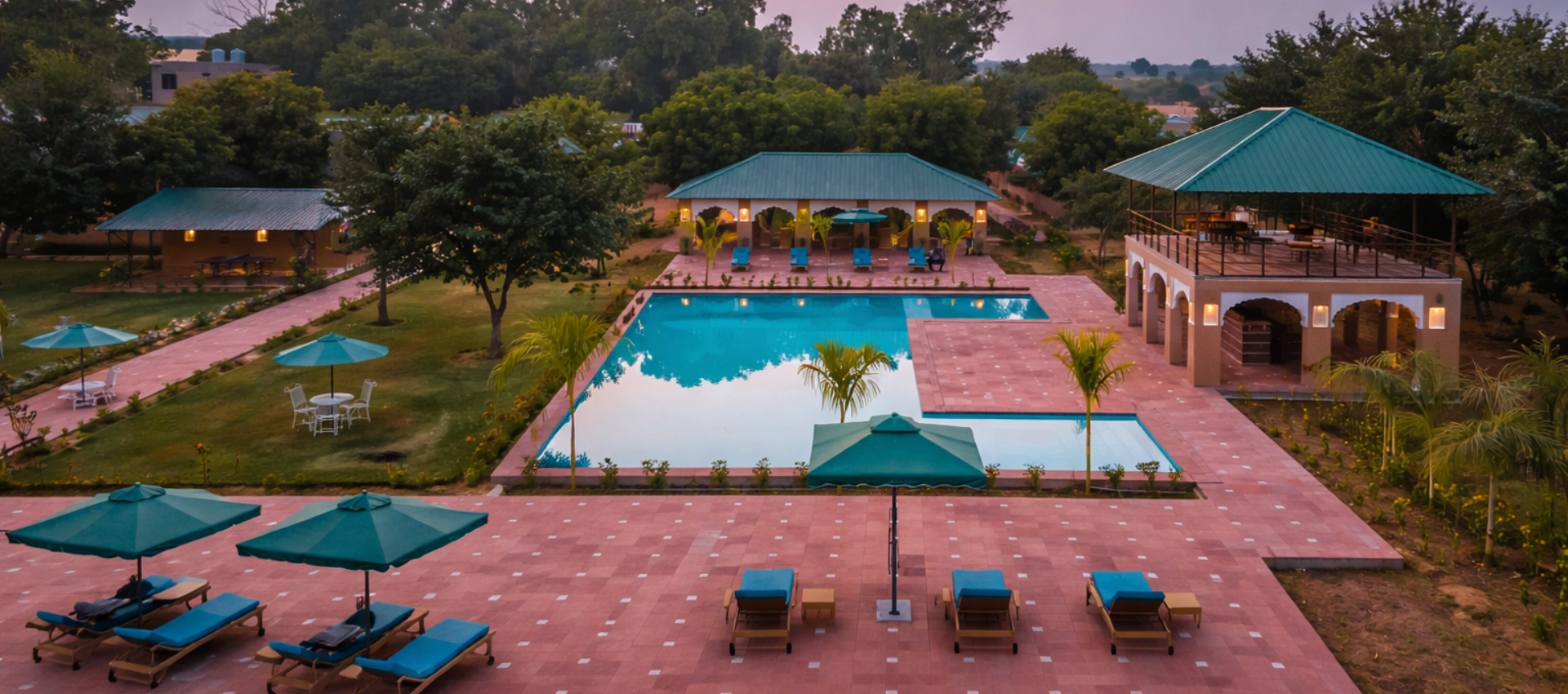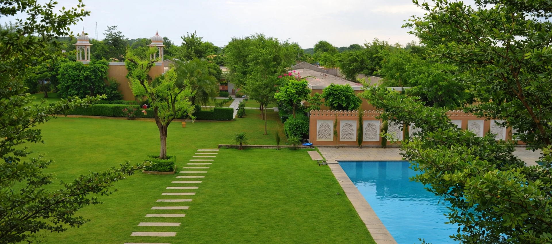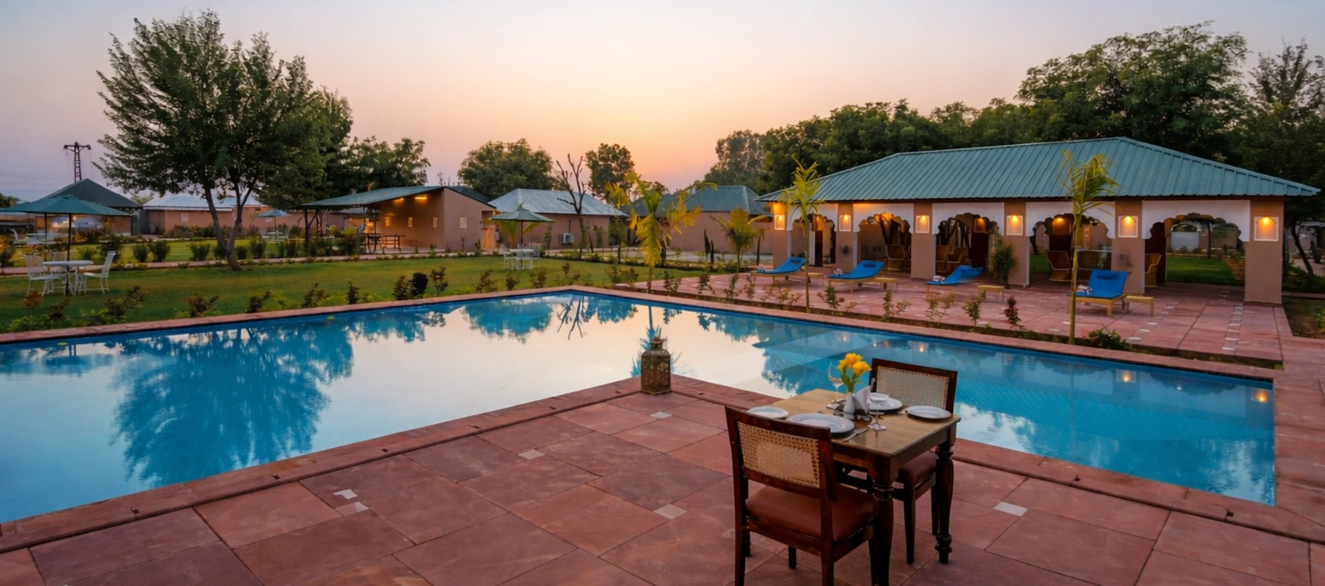 Aangan rests at the edge of Ranthambore’s jungles, where mornings are quiet and light feels gentle. Designed around sensible luxury, the space is open, calm, and effortlessly comfortable—filled with native trees, soft light, and room to breathe. After the jungle, return to warm meals, soothing silence, and the ease of your private pool.